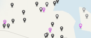 De pink nåle indikerer steder, hvor både du og dit match har aner.